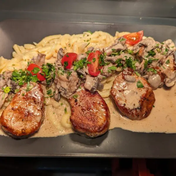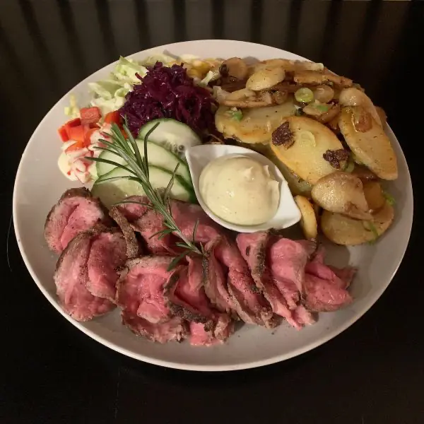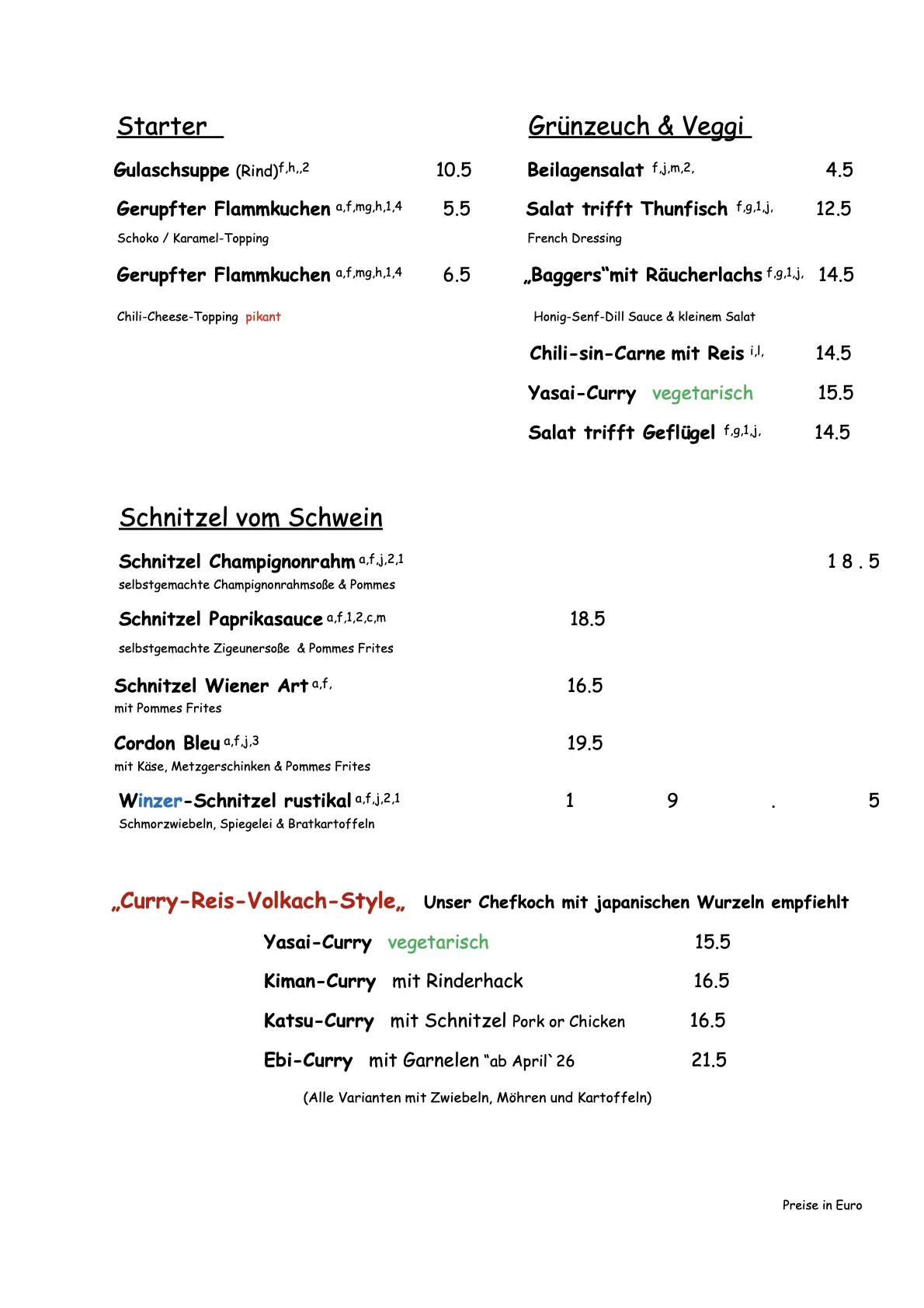 Wir legen großen Wert auf regionale Produkte und arbeiten eng mit Lieferanten aus der Region zusammen. Unsere Küche verbindet traditionelle Gerichte mit modernen Akzenten und bietet eine abwechslungsreiche Auswahl. Besonders beliebt sind unsere vielfältigen Schnitzelvariationen – vom klassischen Schnitzel Wiener Art über Schnitzel mit Champignonrahmsauce bis hin zu kreativen Interpretationen wie dem American Style Schnitzel mit BBQ-Sauce oder dem Asia-Schnitzel mit Sweet-Sour-Sauce. Vegetarische Alternativen stehen ebenfalls bereit.