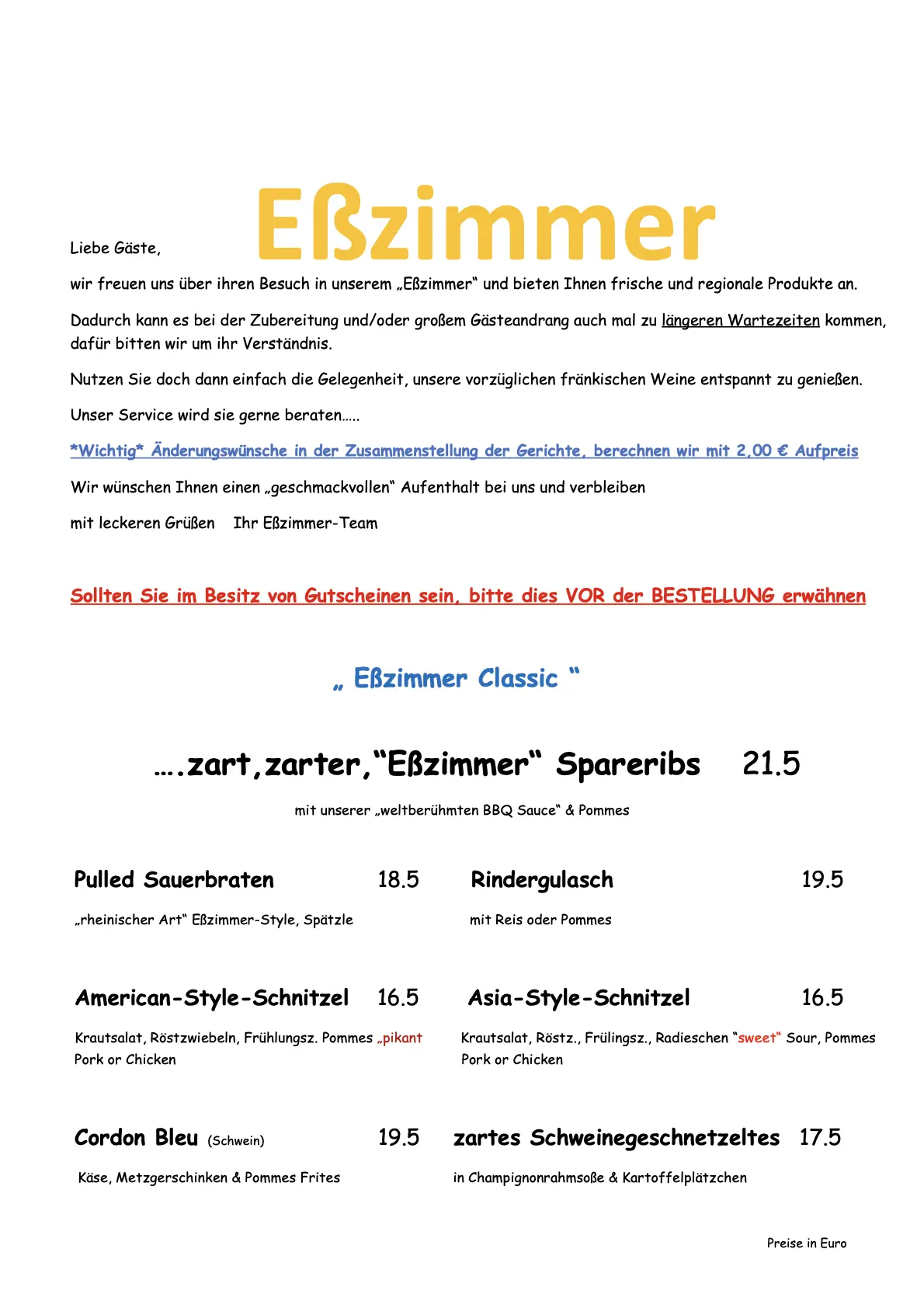 Wir freuen uns auf Ihren Besuch im Eßzimmer Volkach.